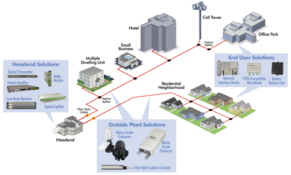 BrightPath® Optical Solutions (BOS™) provides operators with the ability to FTTx solution that meets their needs of today while providing a migration path to the technology of tomorrow. It also helps reduce power consumption in the outside plant by eliminating or reducing active components. BOS customers can cost effectively continue to deliver competitive high bandwidth services and fully leverage all of their existing infrastructures, while saving approximately $1,000 per mile, per year, on energy costs using an RFoG network.